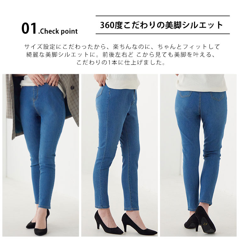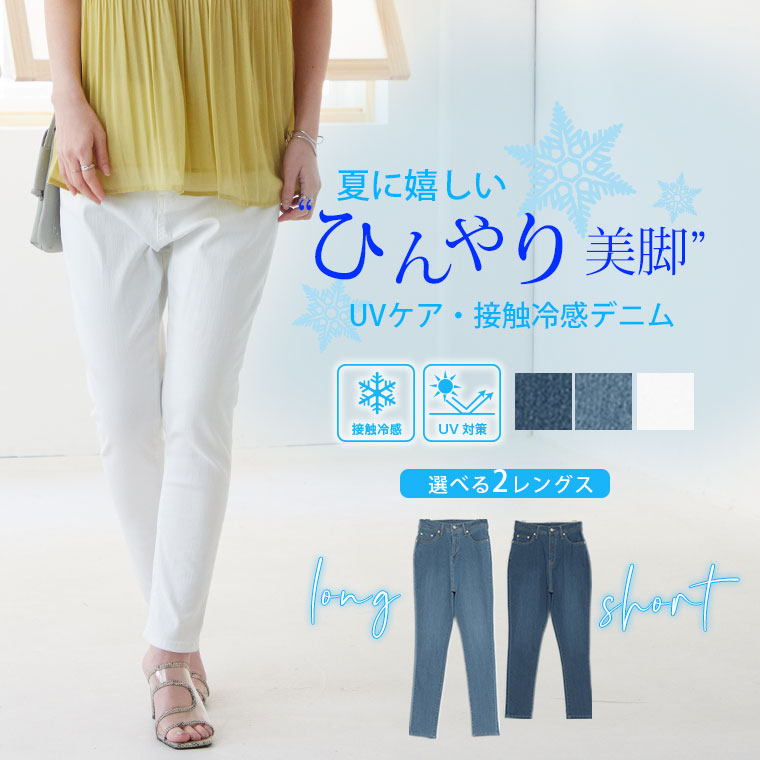 接触冷感美脚ストレッチスキニーデニムパンツ