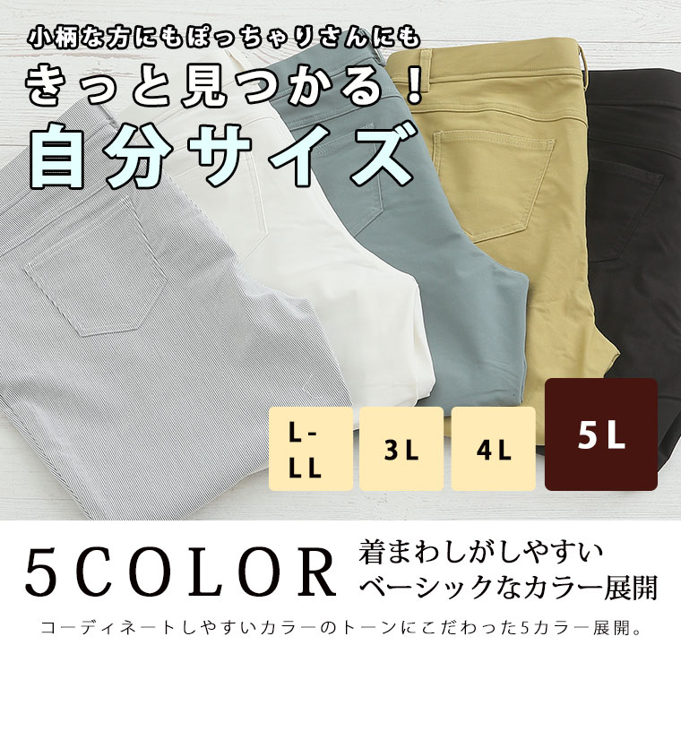 下半身が大きいので、6Lか7Lを履いてますがこれは4Lで楽々でした。股下55を購入、157cmでふくらはぎの半分位の丈でした。