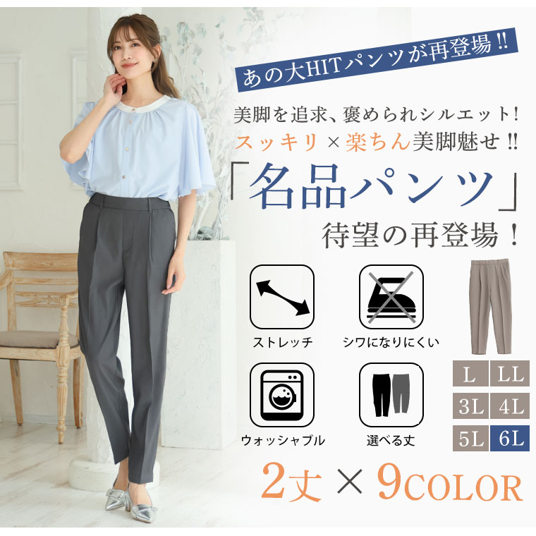 ボトムス LL 3L 4L 5L 6L 春 夏 リニューアル!! Rin 低身長さん高身長さん対応 私サイズで綺麗が叶う選べる身長別 スラっと美脚 ストレッチ テーパードパンツ
