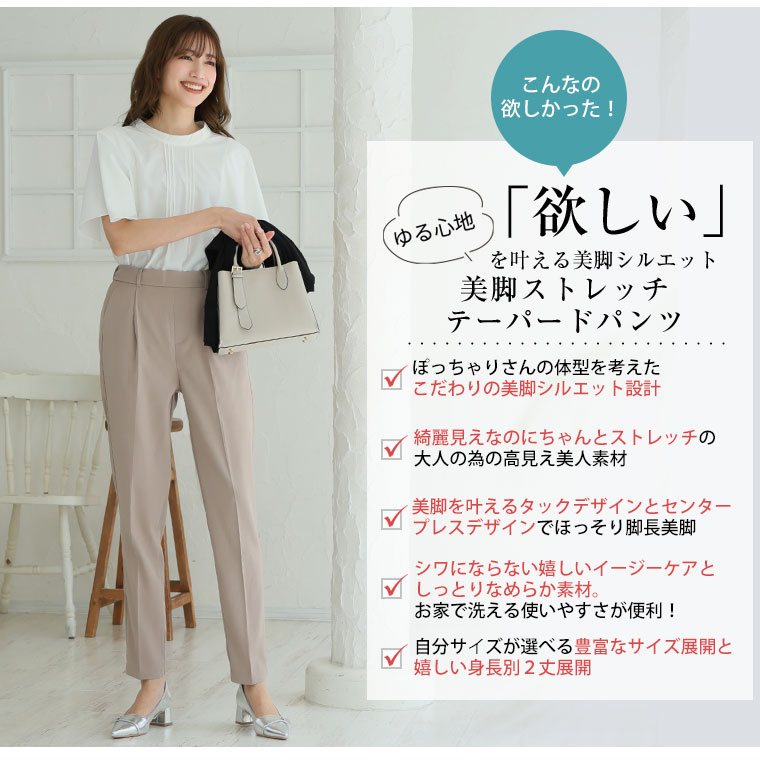 低身長さん高身長さん対応綺麗が叶う選べる身長別スラっと美脚ストレッチ テーパードパンツ