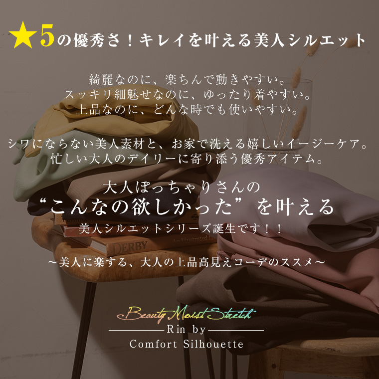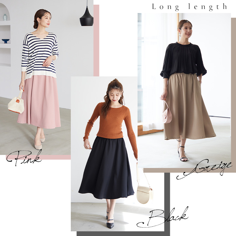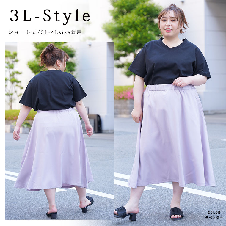 3. 大きいサイズ Rin 低身長さん 高身長さん対応 私サイズで綺麗が叶う 選べる身長別の華奢魅せ ストレッチ 美人 フレアスカート