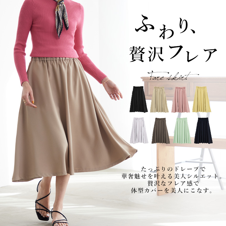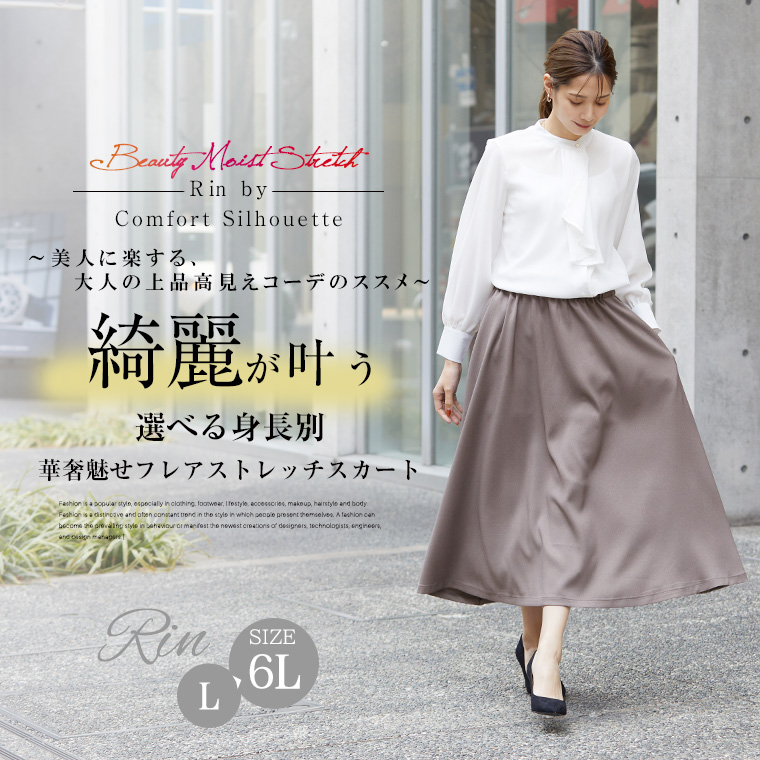 4. 大きいサイズ Rin 低身長さん 高身長さん対応 私サイズで綺麗が叶う 選べる身長別の華奢魅せ ストレッチ 美人 フレアスカート