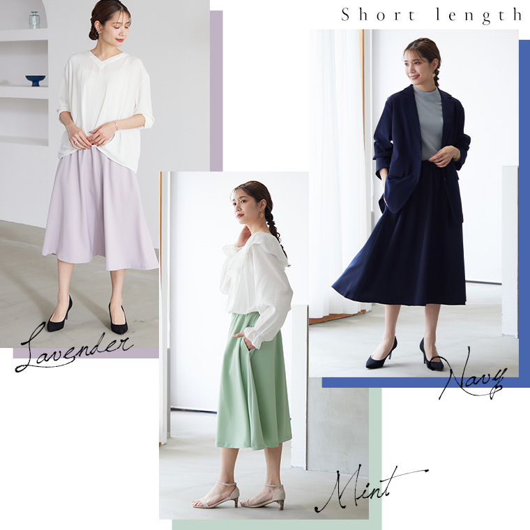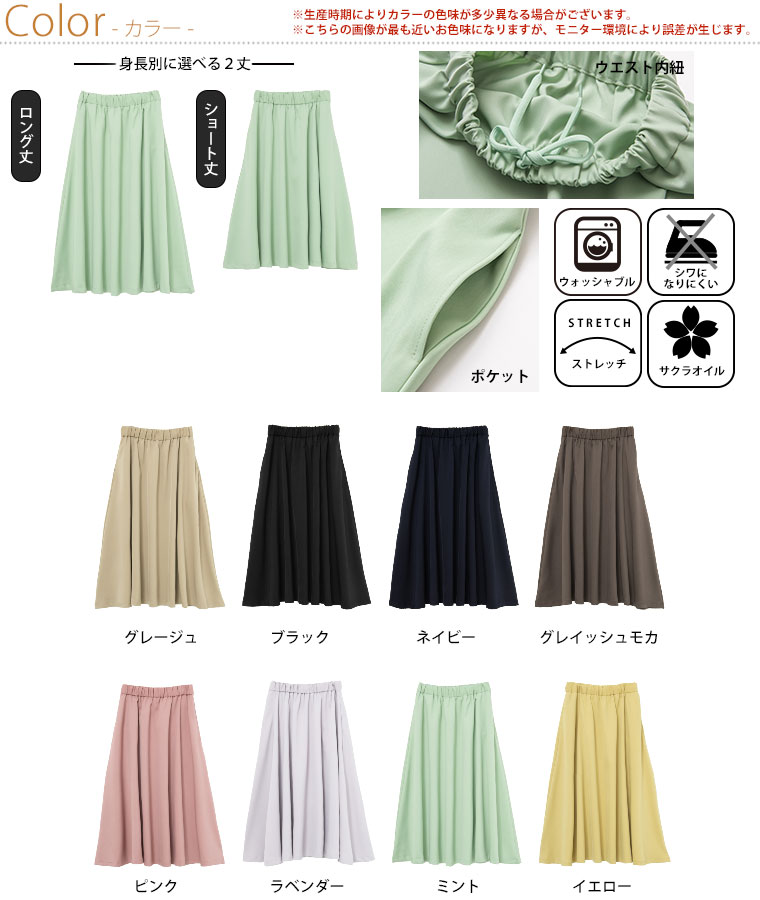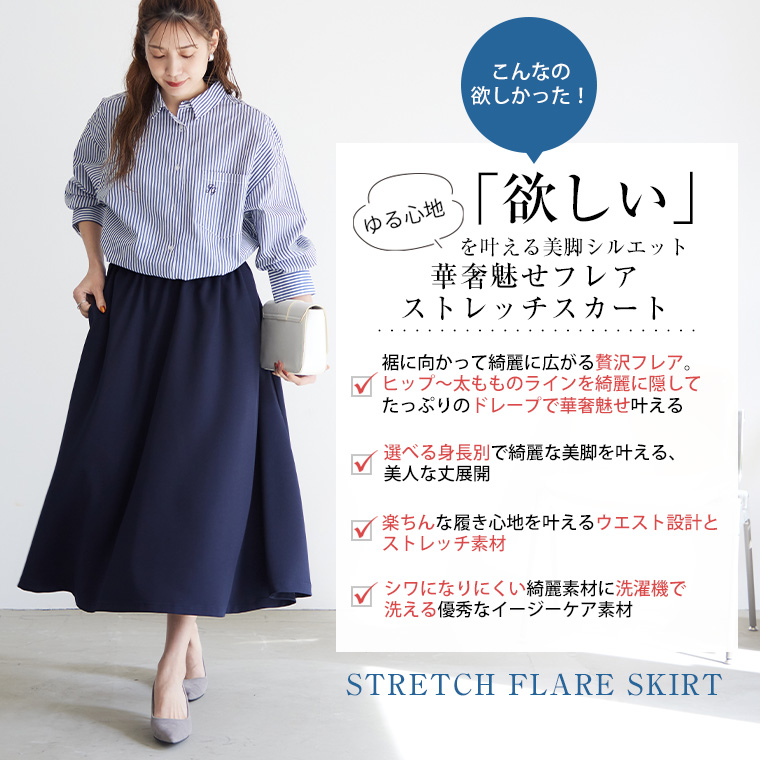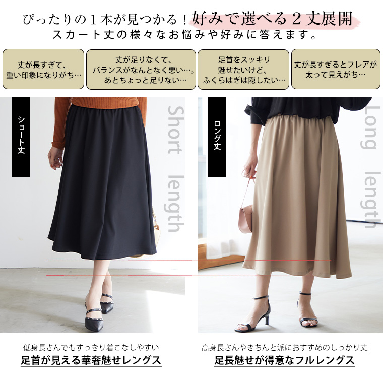 私サイズで綺麗が叶う選べる身長別大人の華奢魅せストレッチ美人フレアスカート
