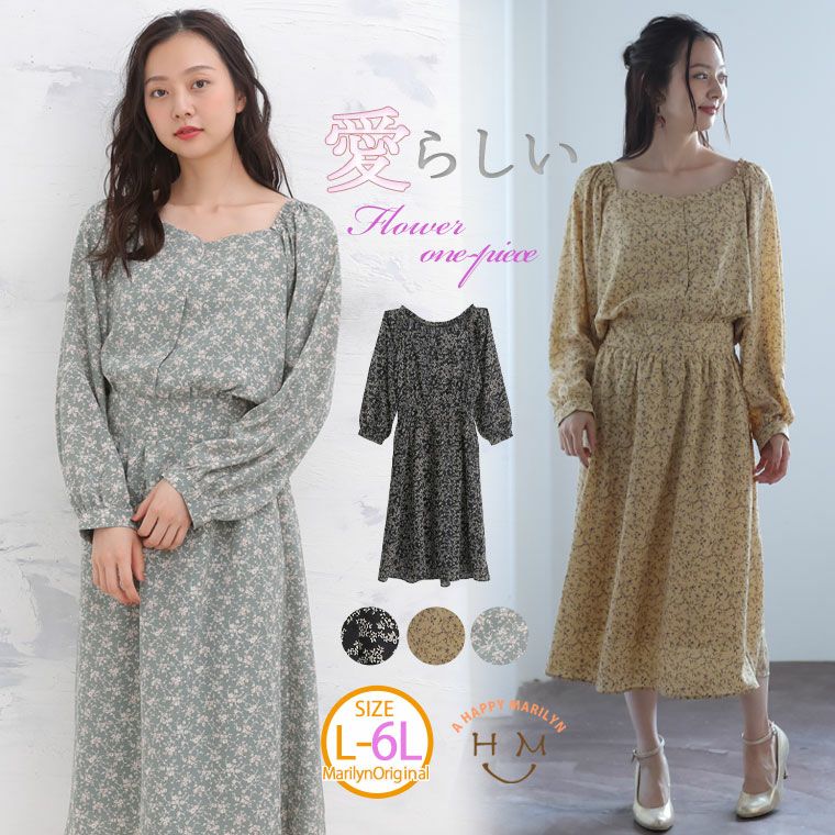 美人シルエットの楽ちん花柄ワンピ