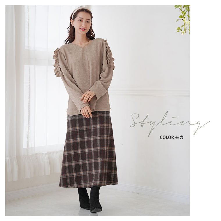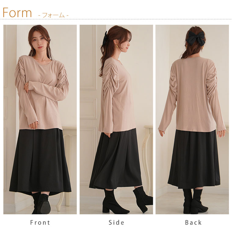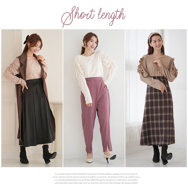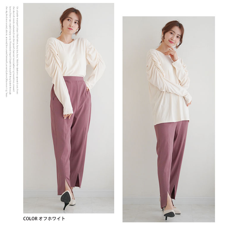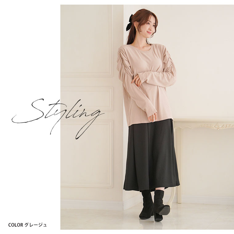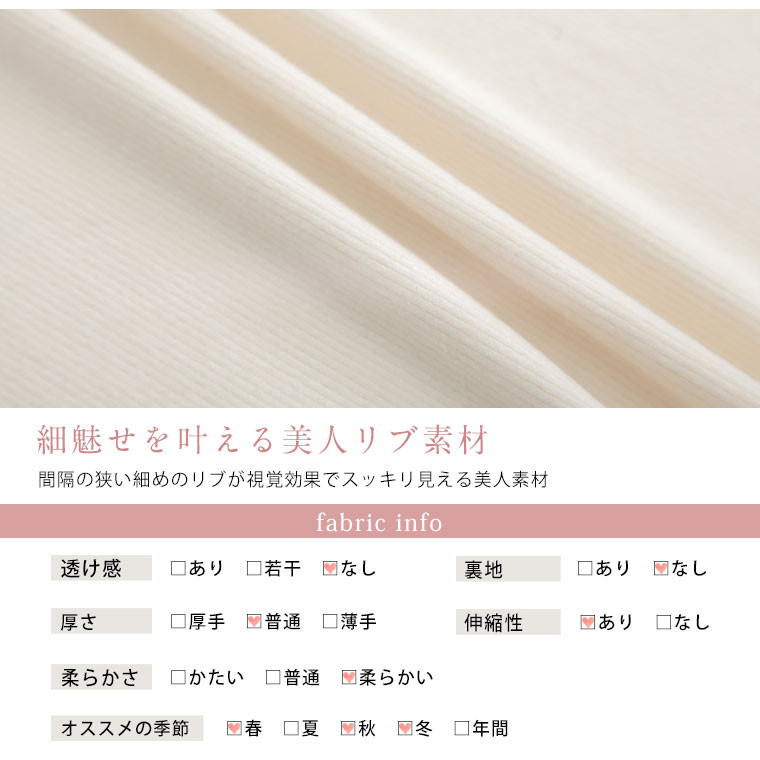 甘いテイストで着こなせる。すっきり上品に細魅せできるデザイン