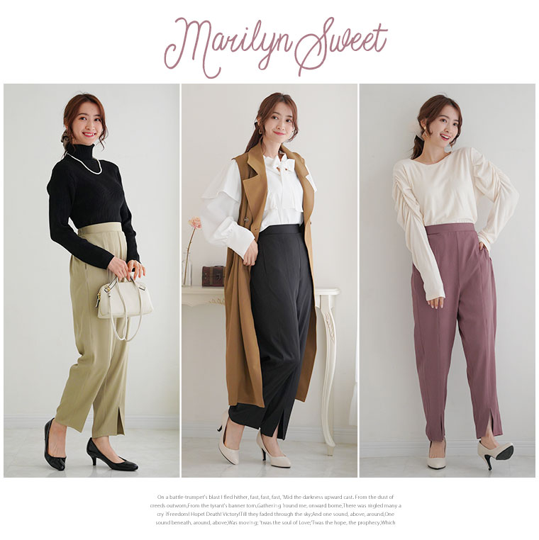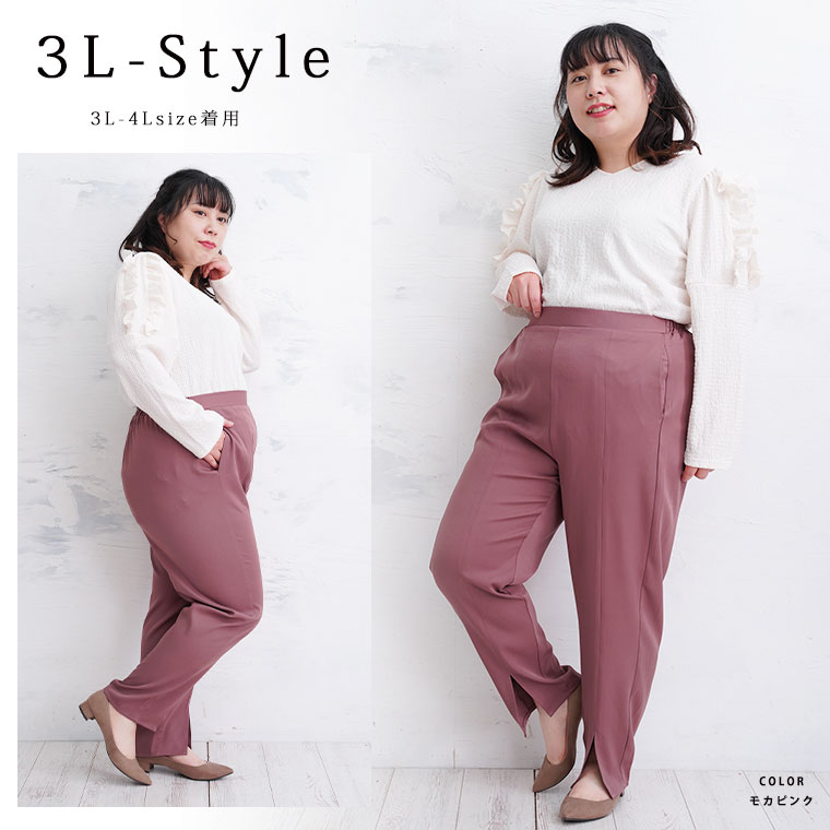 3. 大きいサイズ 【MarilynSweet】体型別フェミニン 裾スリット入り テーパードパンツ
