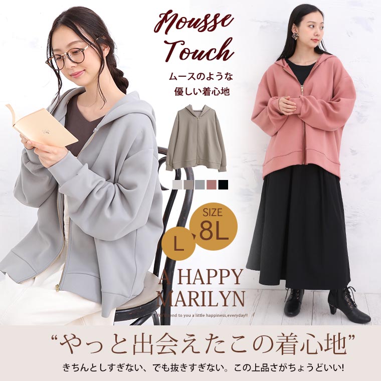 オリジナル トップス パーカー パーカ アウター LL 3L 4L 5L 6L 7L 8L 秋 秋物 秋冬 ゆったり 胸周り 二の腕カバー 長袖 プラスサイズ やわらか ムースタッチ ダンボールニット はおり ジップパーカー