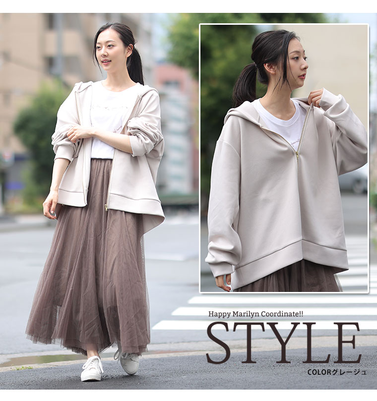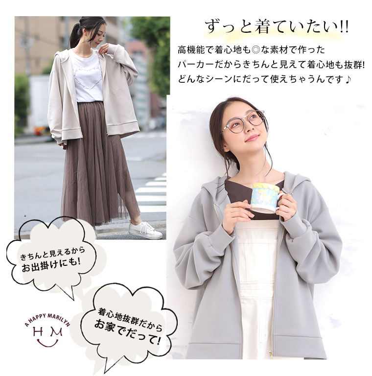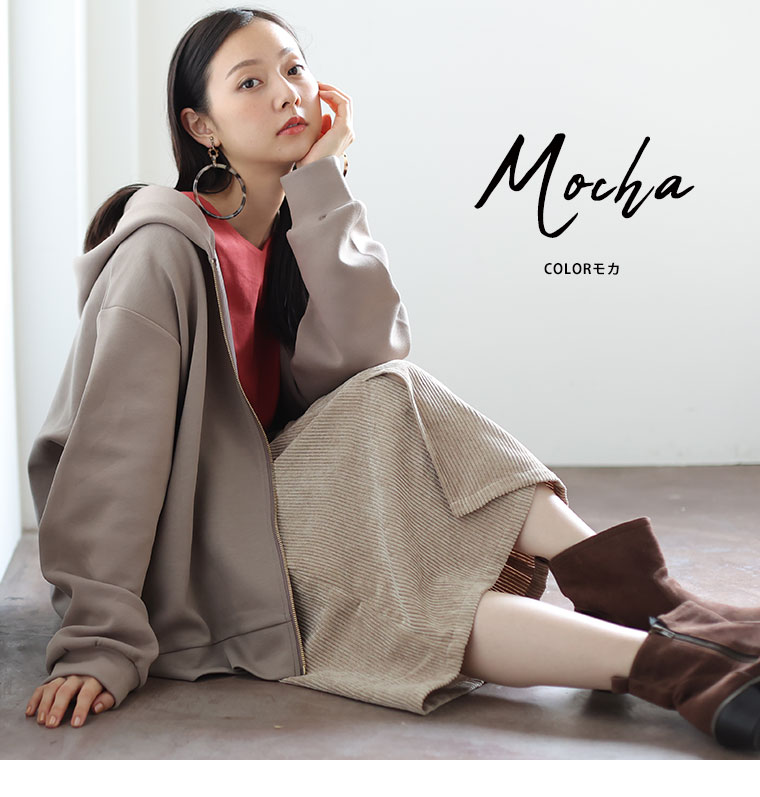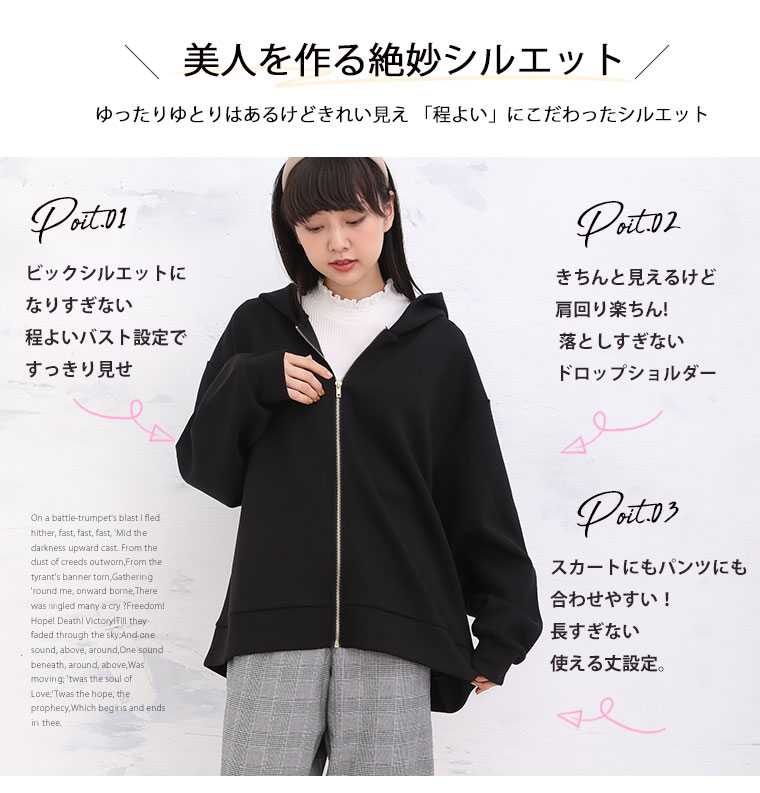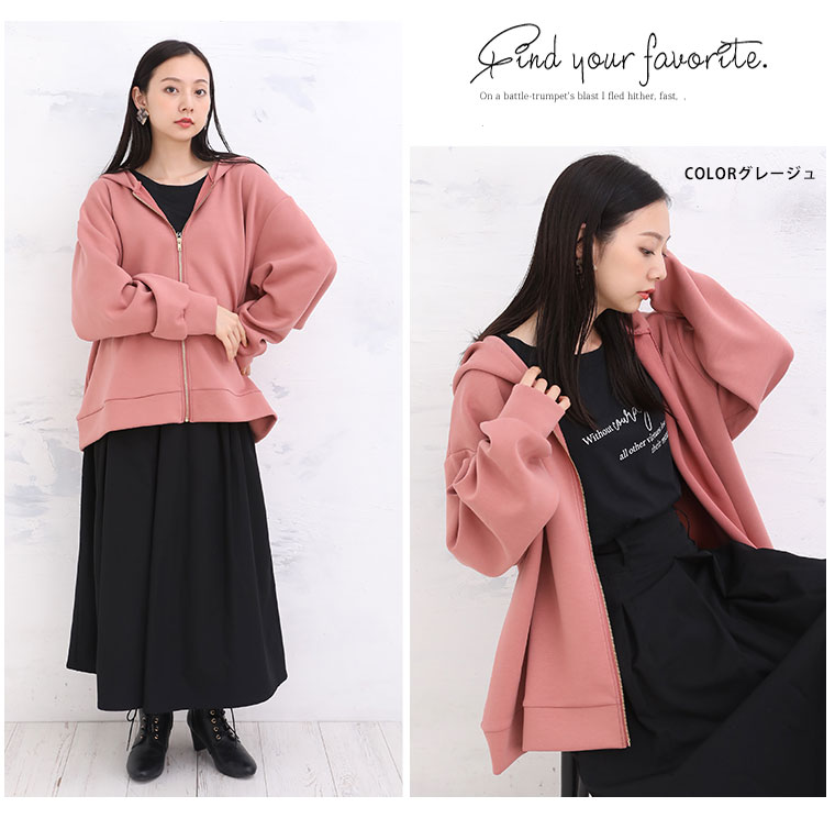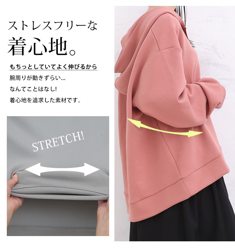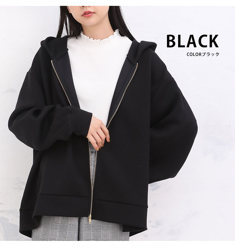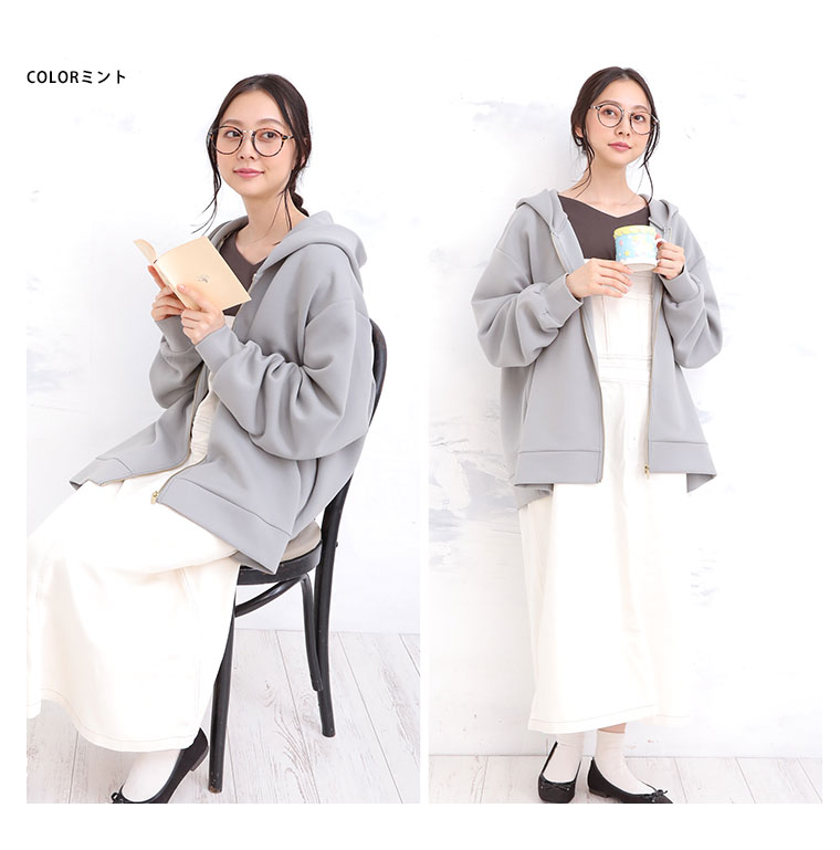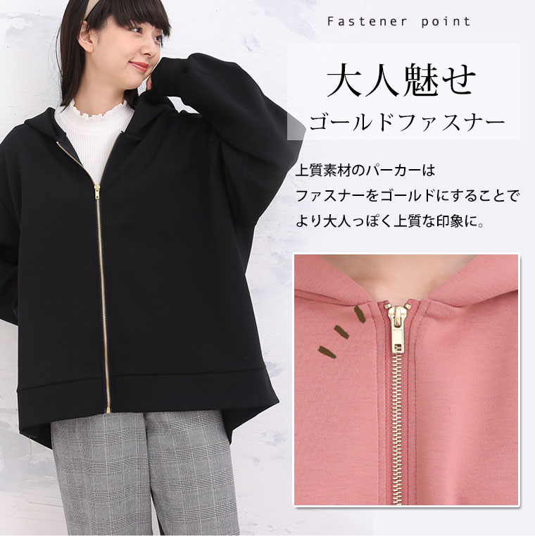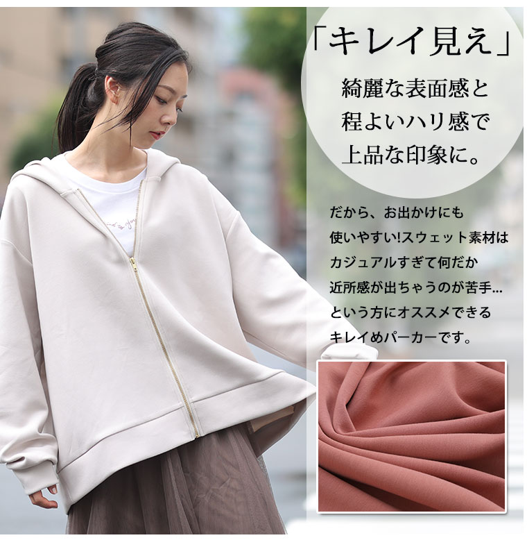 綺麗な表面感と程よいハリ感で上品な印象のジップアップパーカー