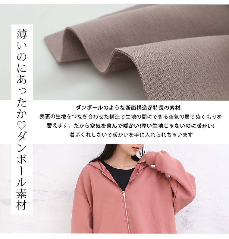 5. 大きいサイズ やわらか ムースタッチ ダンボールニット はおり ジップパーカー