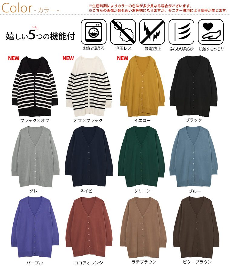 5. 大きいサイズ Rin 新色追加!! 綺麗を追求 毛玉にならない 重ね着美人な シンプル Vネック ニットカーデ 毛玉レス 抗ピル