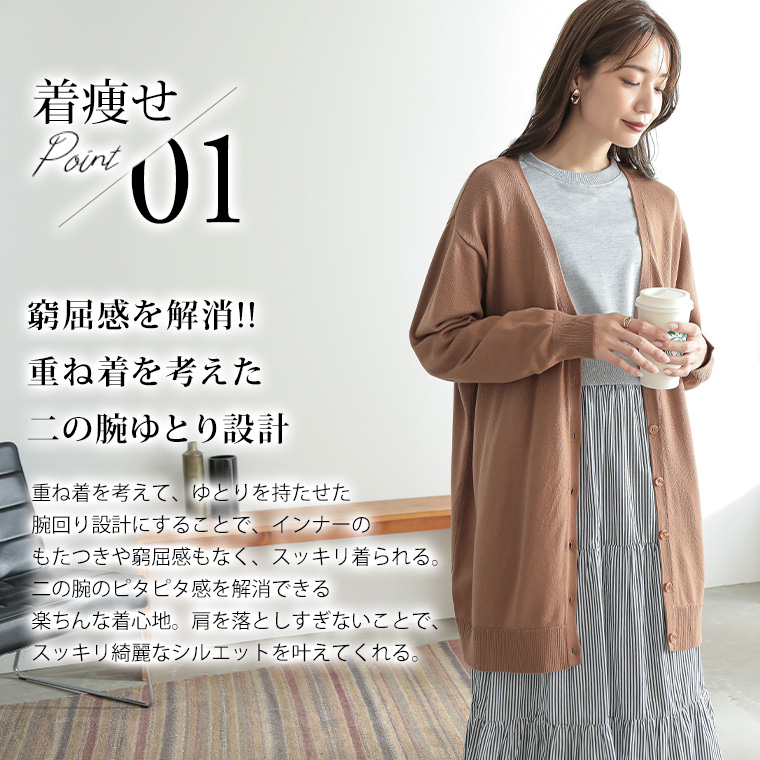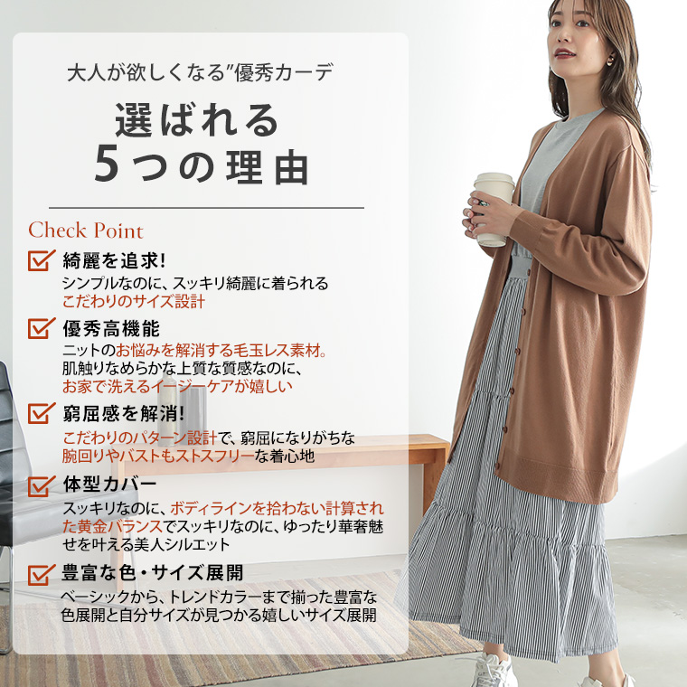 オリジナル トップス カーデ 羽織り LL 3L 4L 5L 6L 秋 冬 お腹 お尻 長袖 Rin 新色追加!! 綺麗を追求 毛玉にならない 重ね着美人な シンプル Vネック ニットカーデ 毛玉レス 抗ピル