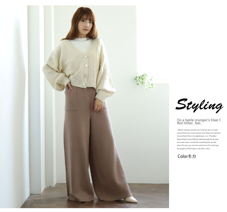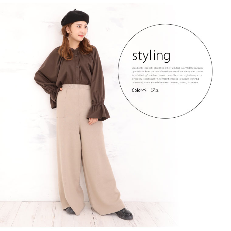 綿ニットで快適に過ごせるワイドパンツ