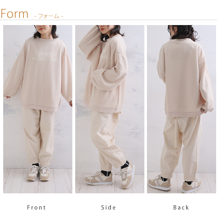 程よい厚みで着ぶくれ知らず! ゆったりシルエットでリラックスして着用が可能。