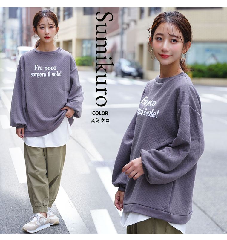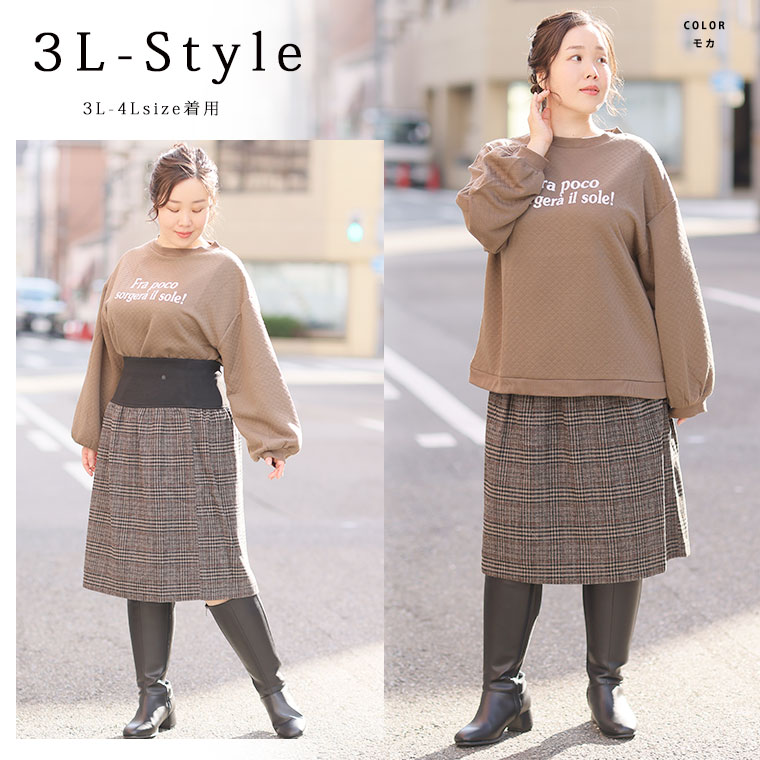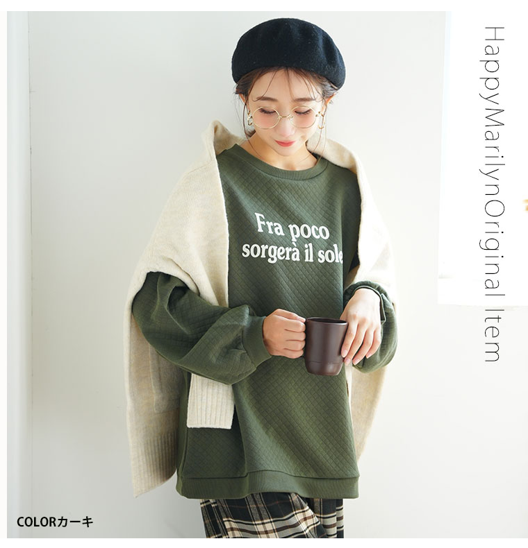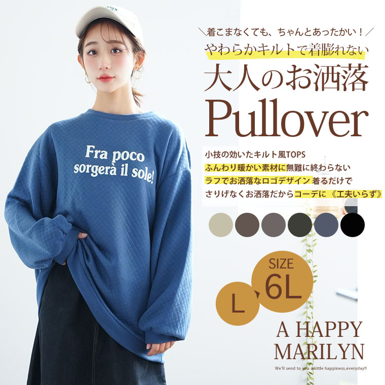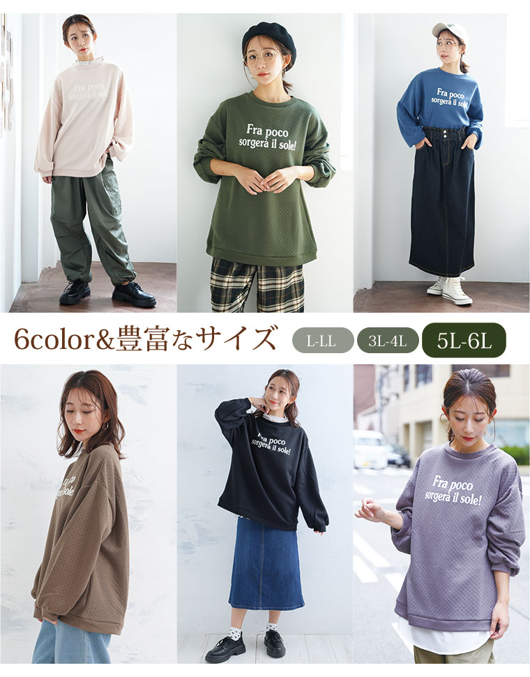 オリジナル トレーナー LL 3L 4L 5L 6L 冬 ぽっちゃり ゆったり お腹胸周り二の腕カバー長袖 ロゴ プラスサイズ ぽっちゃりさんの為に作った キルトシリーズ バルーンスリーブ プルオーバー