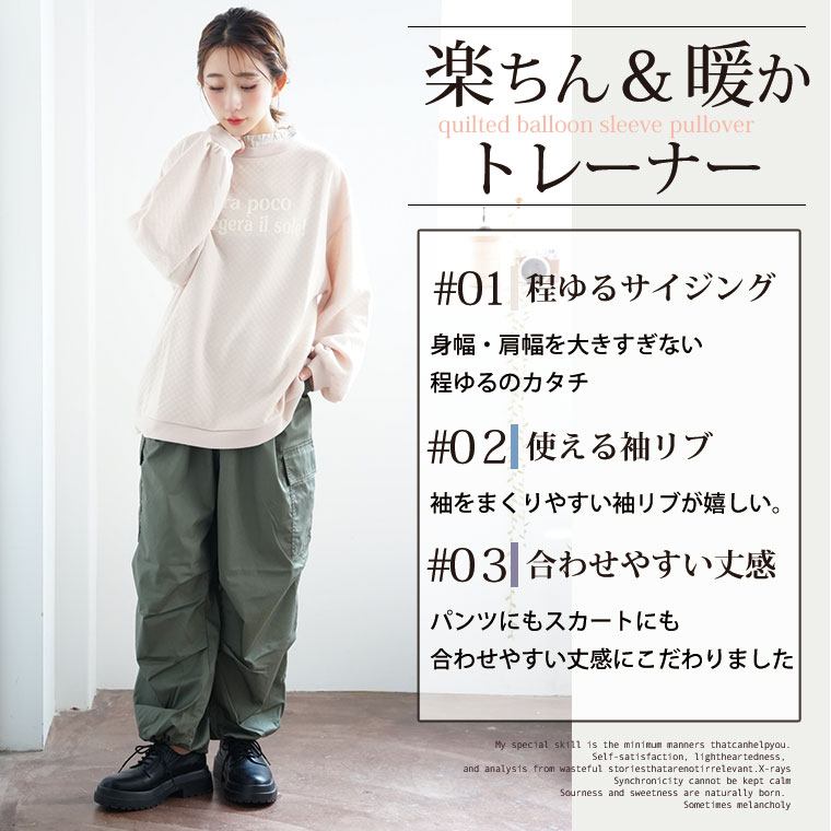 大きいサイズ ぽっちゃりさんの為に作った キルトシリーズ バルーンスリーブ プルオーバー