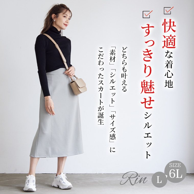 オリジナル ボトムス タイト LL 3L 4L 5L 6L 秋 秋物 秋服 冬 冬物 冬服 ゆったり お腹 腰周り 毛玉になりにくい 柔らか 軽やか Rin 品よく決まる 細見えするのに苦しくない ライトダンボール ナロースカート