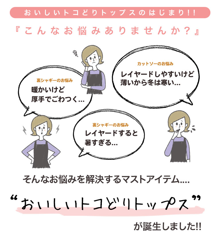 おいしトコどりトップスが更にバージョンアップして登場!!しっかり裏シャギーでほっこり暖かスタイルの完成。