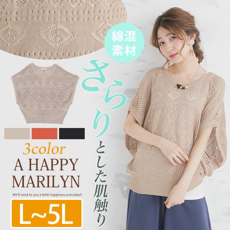 大人の肌見せ透かし編みVネック半袖サマーニットプルオーバー