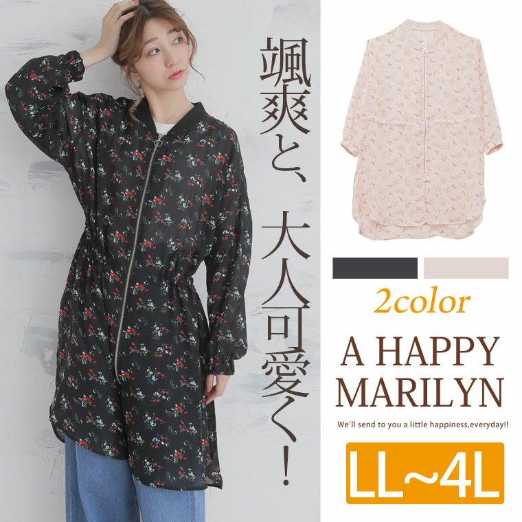 ウエスト紐でシルエットをアレンジ♪繊細な花柄デザインのロングブルゾン
