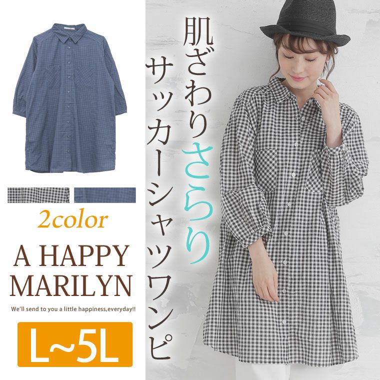 ゆったりカジュアルなサッカー素材で大人可愛く。チェック柄シャツワンピース
