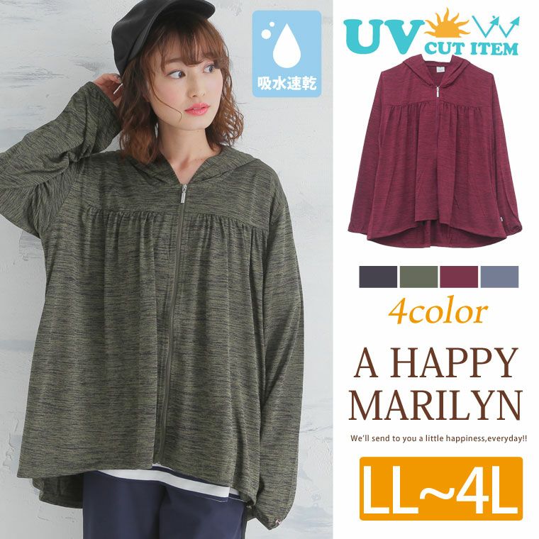 軽い天竺素材で使いやすさ◎ギャザー切り替えUV吸水速乾パーカー