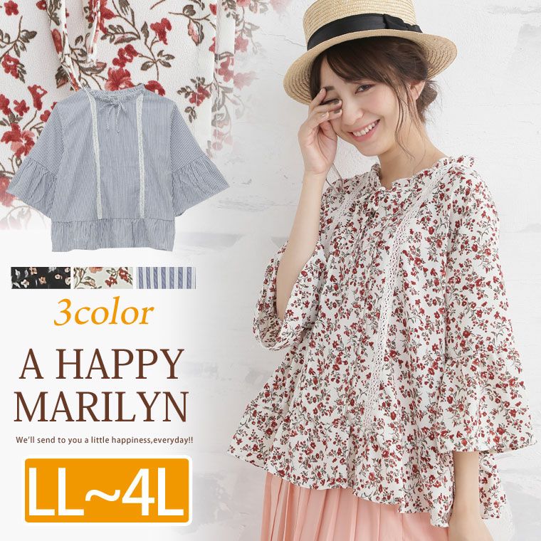 華やかなレース×フリルデザインで女性らしく着こなす。2柄から選べるブラウス