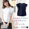 襟ぐりにあしらったビジューと袖のフリルプリーツが華やかな大人のTシャツ
