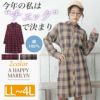 綿100%の素材で長いシーズン活躍する。ツイルチェック柄長袖シャツワンピ