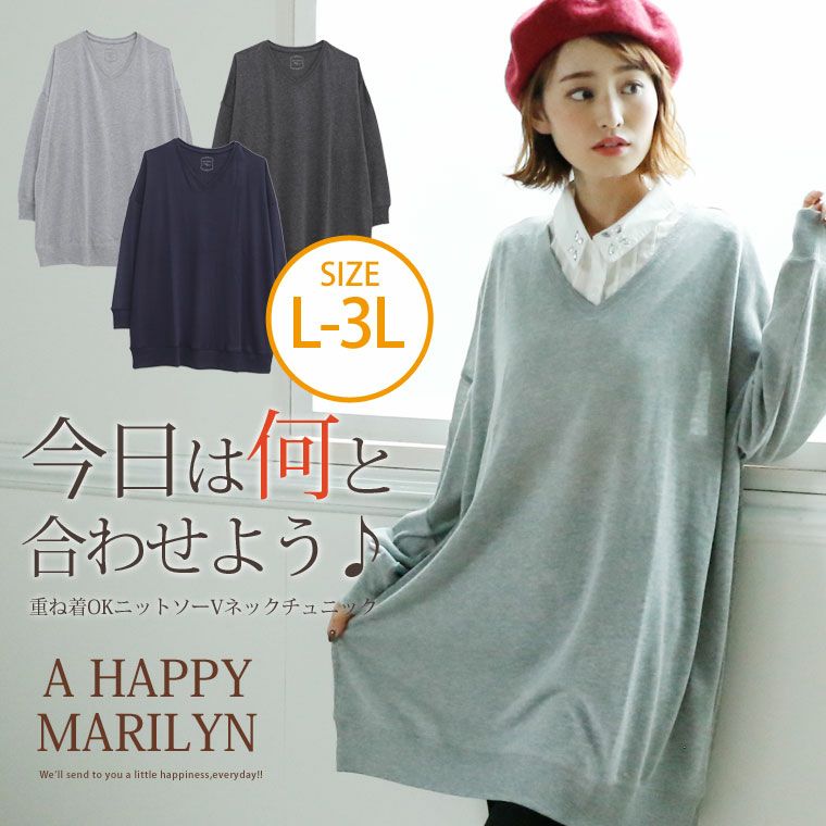 柔らかいニットソー素材でゆったりリラックス。Vネックチュニック
