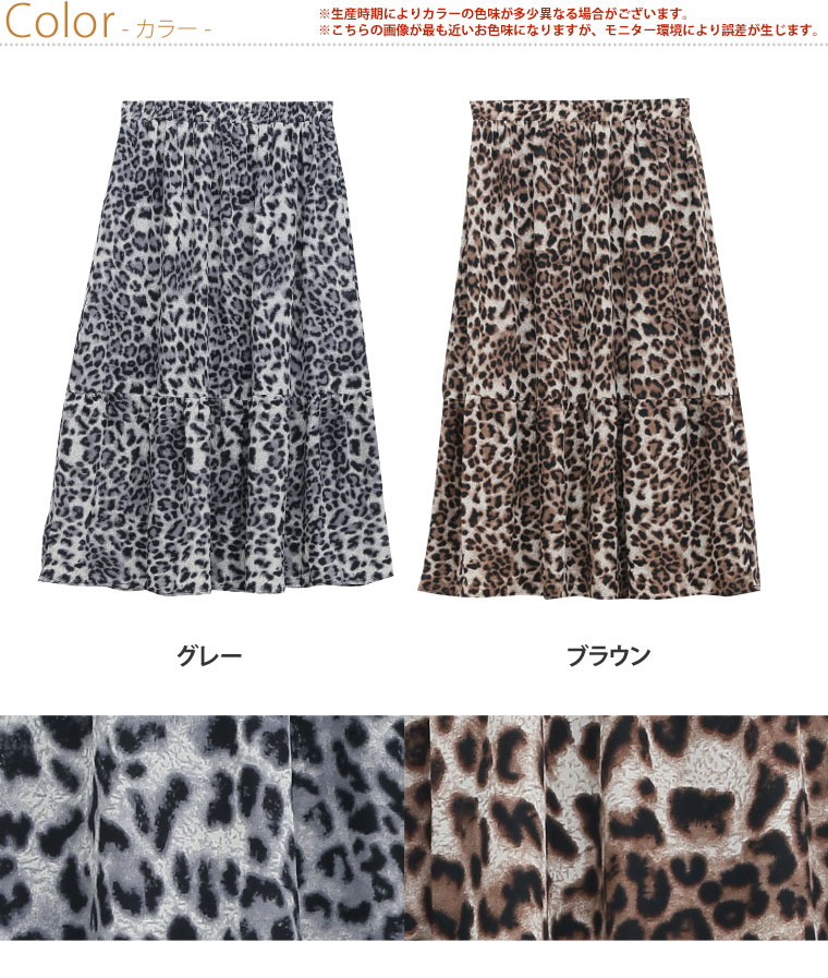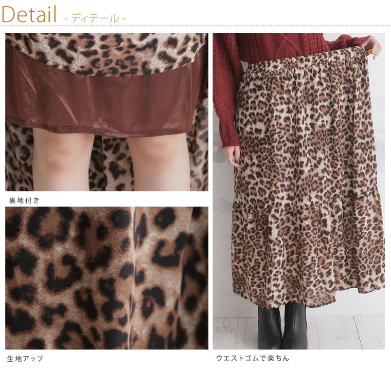 ふんわりとしたレオパード柄でコーデのアクセントに。裾フリルスカート