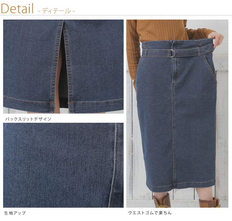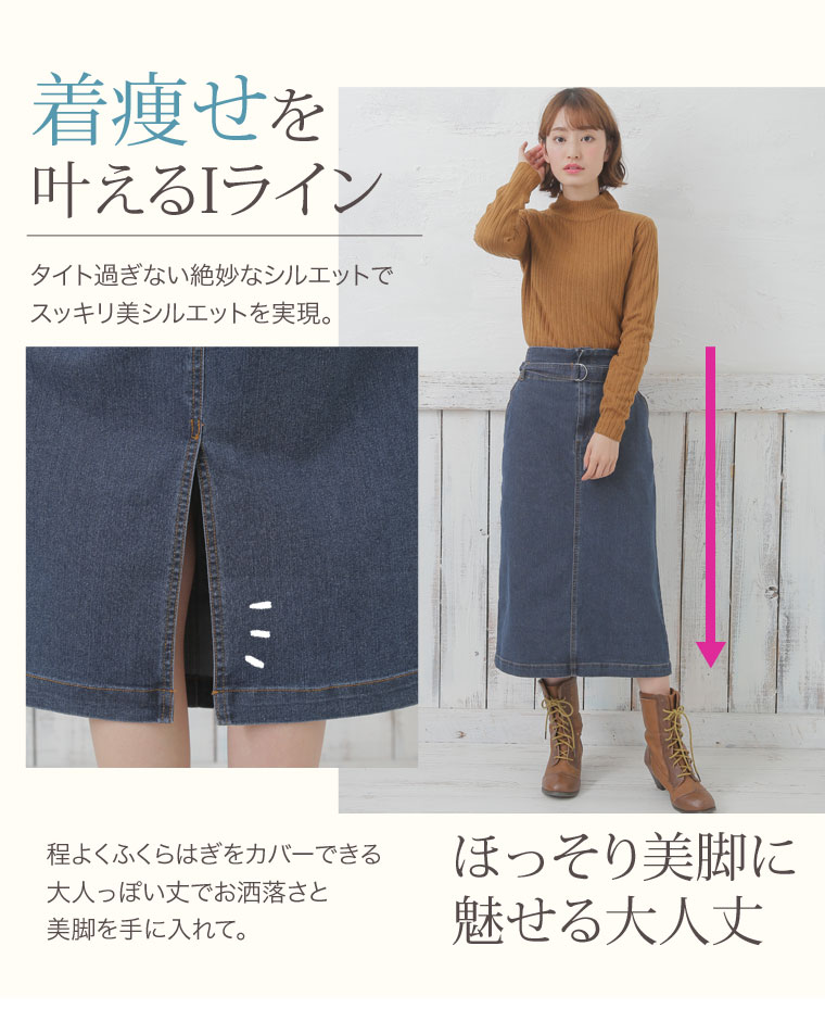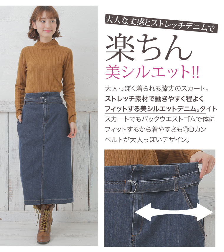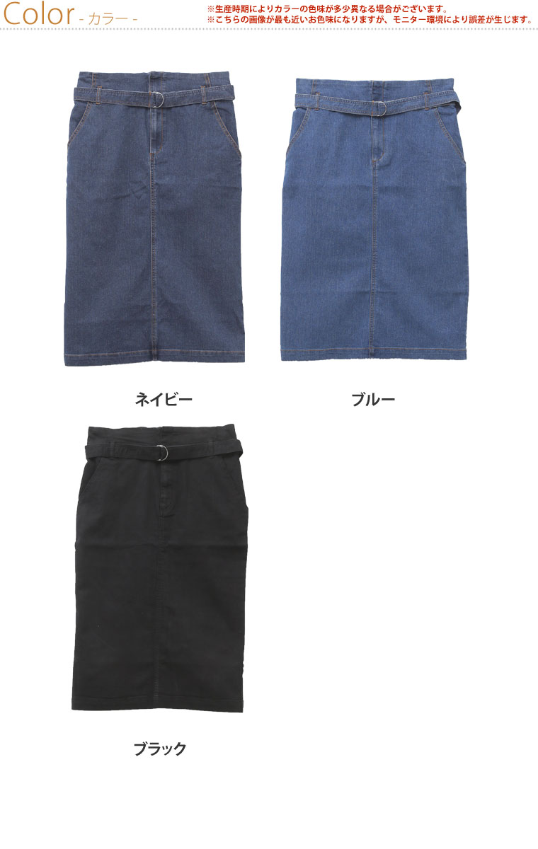 Dカンベルトでウエストスッキリ!!ストレッチデニムタイトスカート