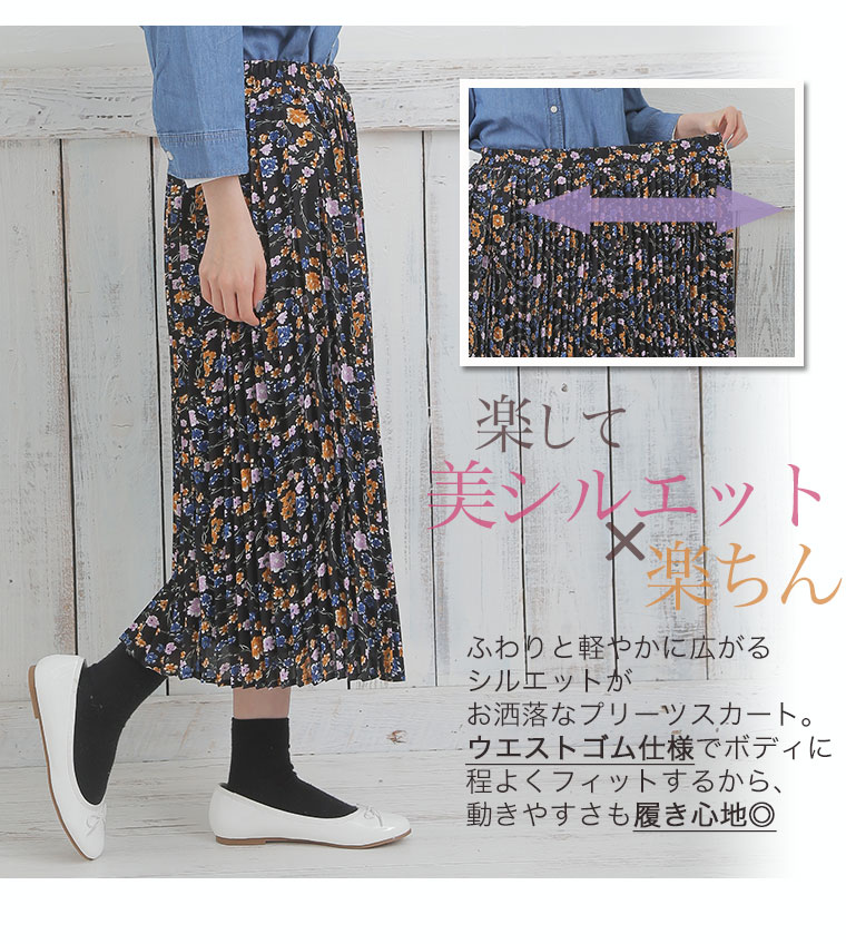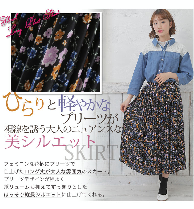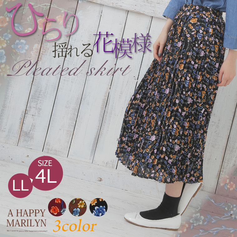 ボトムス LL 3L 4L 春 春物 春服 ぽっちゃり ゆったり かわいい おしゃれ カジュアル ナチュラル 可愛い 大人 きれいめ ガーリー 花柄 ロング丈 プリーツスカート