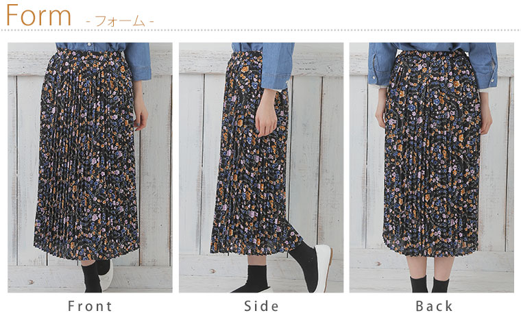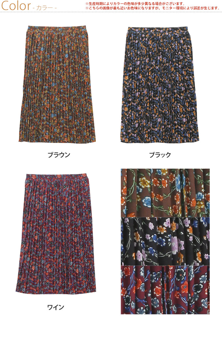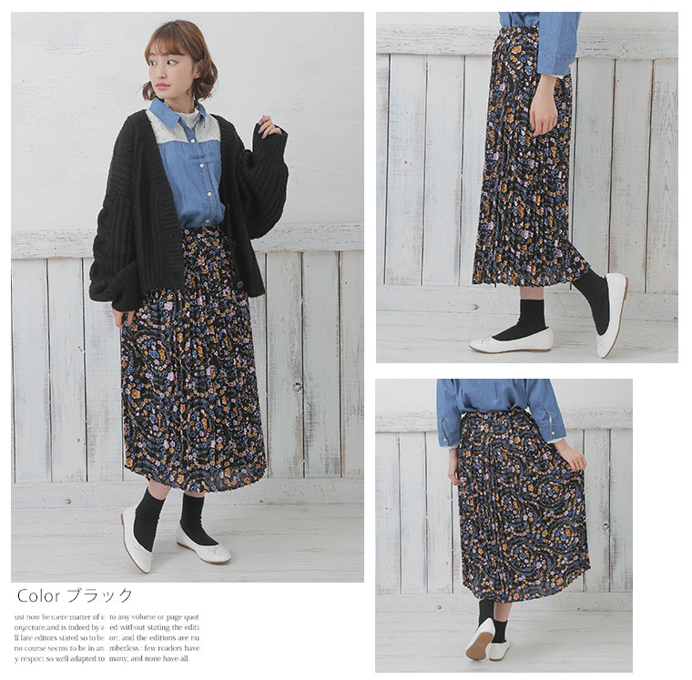 3. 大きいサイズ 花柄 ロング丈 プリーツスカート