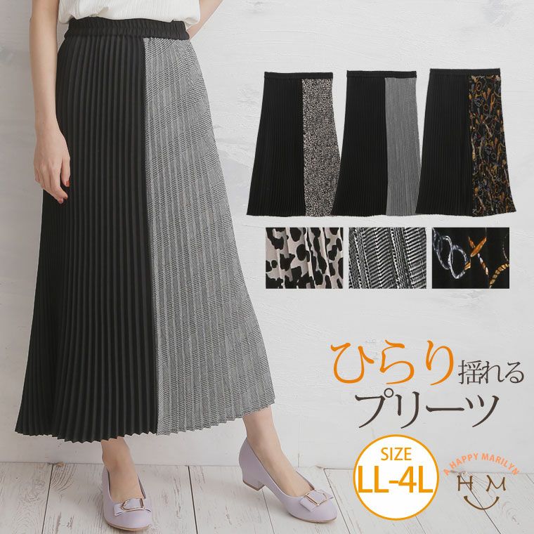 ひらりと揺れるプリーツで下半身カバー◎3柄から選べる切替スカート