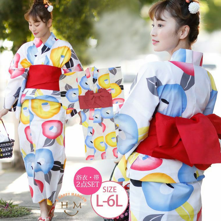 平帯・つくり帯の2タイプから選べる!!ネオモダン椿浴衣セット