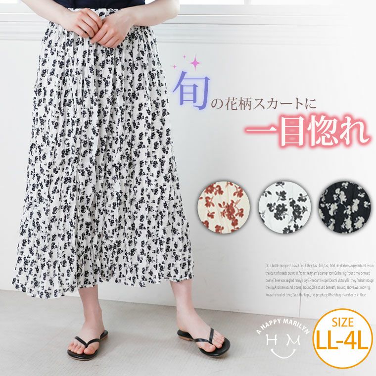 しわ加工でボリュームを抑えてスッキリ見せ!花柄プリントワッシャーロングスカート