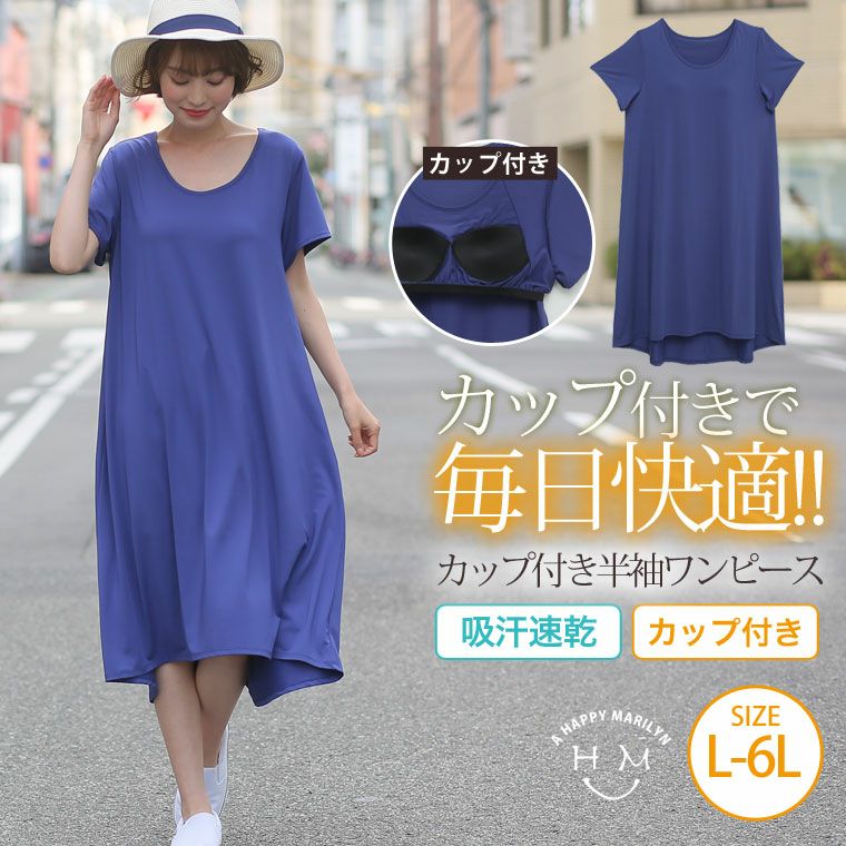 吸水速乾生地で暑い季節もストレスフリー◎楽ちんカップ付き半袖ワンピース