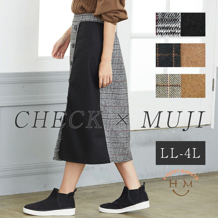 チェック柄×無地のお洒落ナロースカート