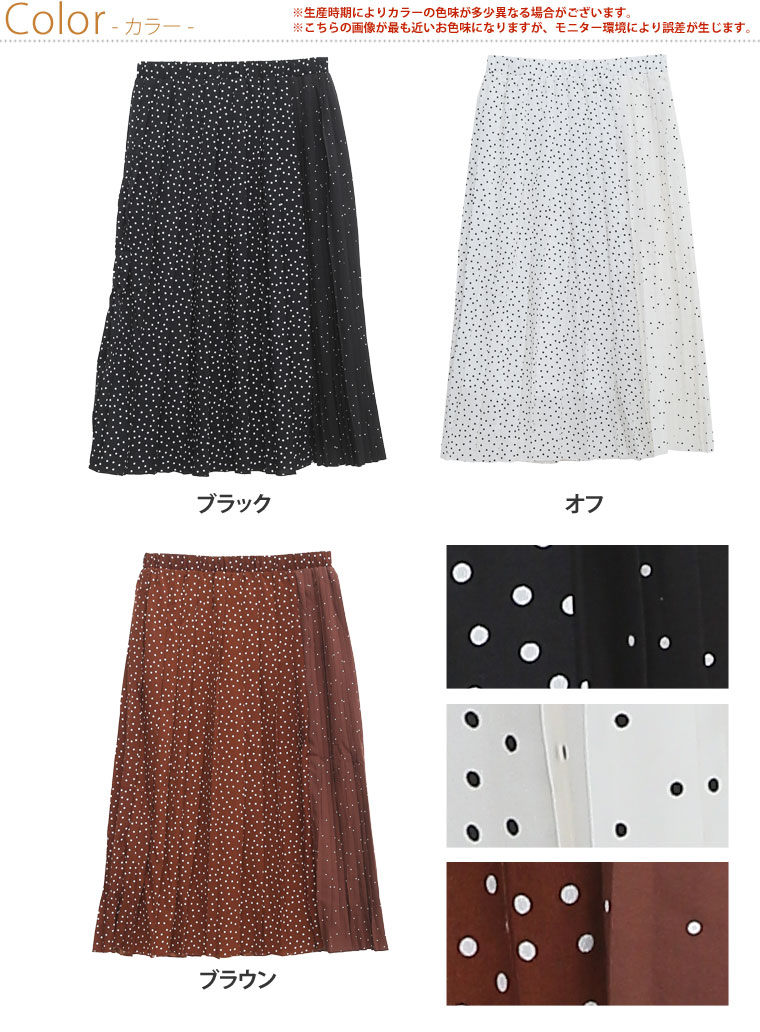 スカート プリーツスカート ボトムス LL 3L 4L 冬 冬物 冬服 ぽっちゃり かわいい おしゃれ デシン ドット柄 プリーツ切替 ロングスカート
