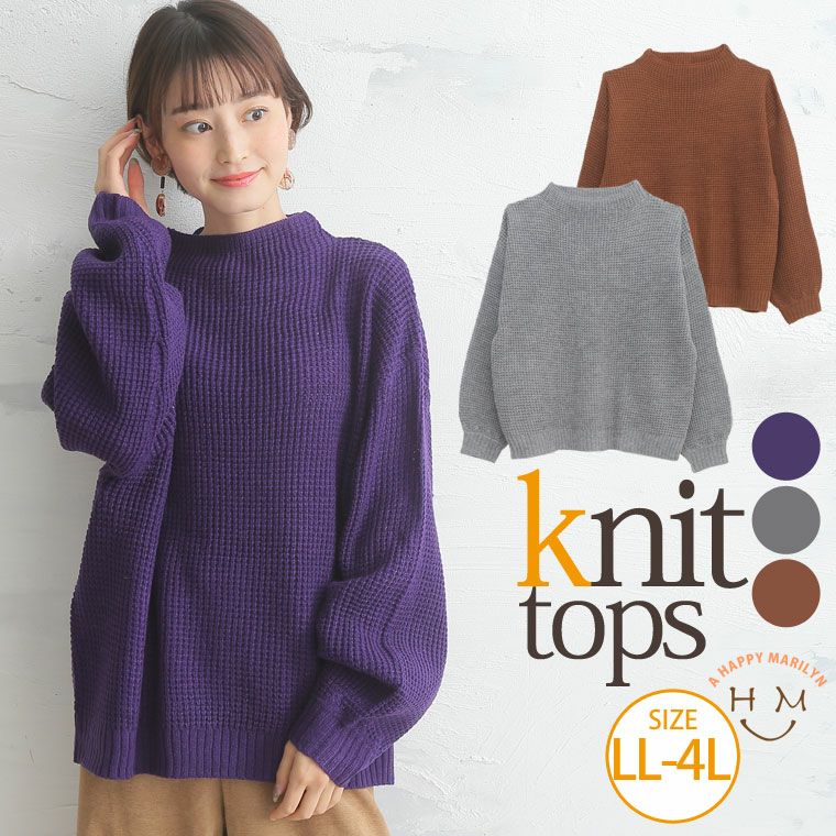 ワッフル編みでカジュアルに着こなせます。ボトルネックニットプルオーバー
