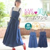 タックが美人な大人のデニムウエストリボンジャンパースカート