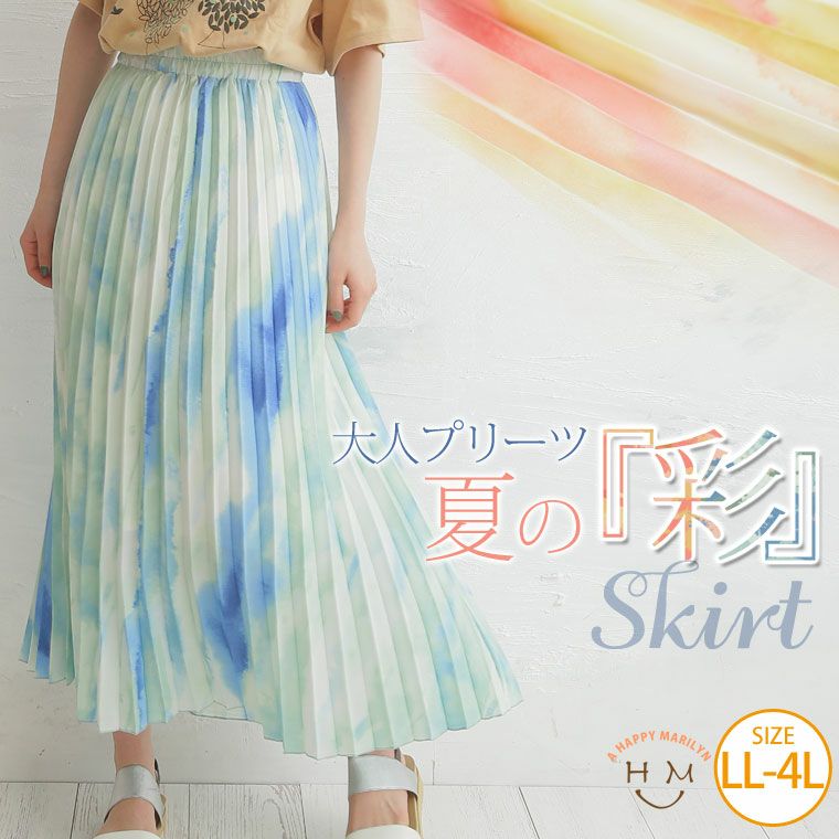 ジョーゼットタイダイ柄プリント83丈アコーディオンプリーツスカート