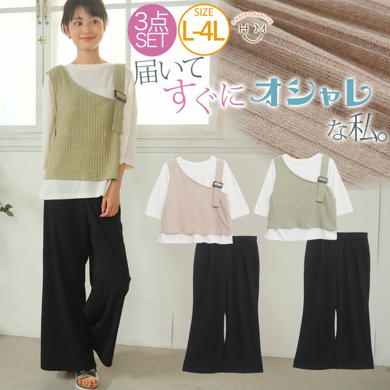 3点セット 楽ちん!簡単コーデのスタイル美人 リブビスチェセットアップ