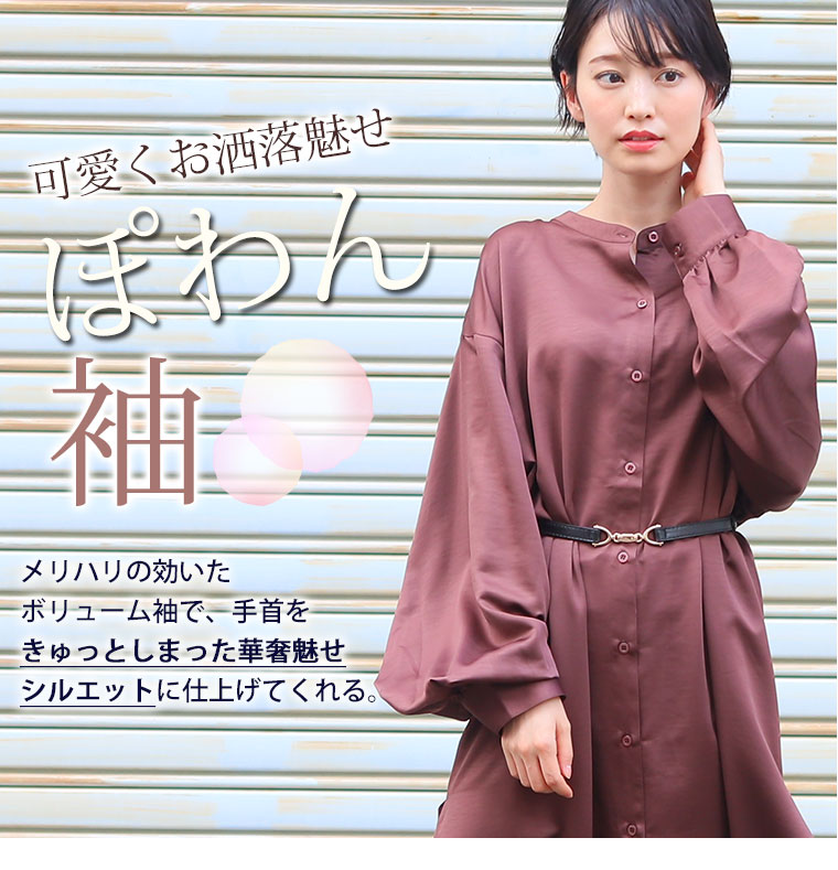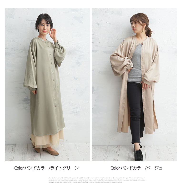 大きいサイズ 襟が選べる ランタン スリーブ ワンピース