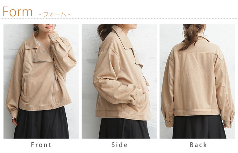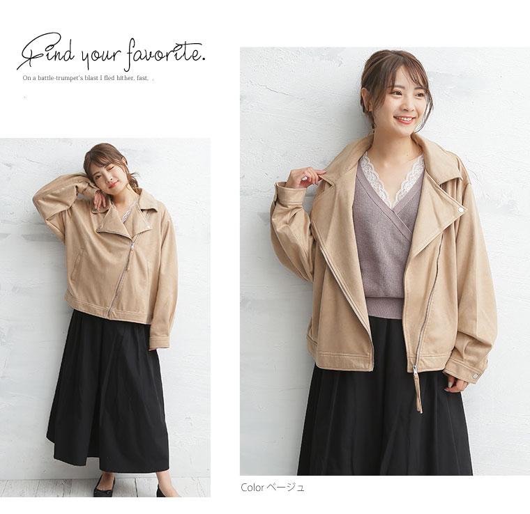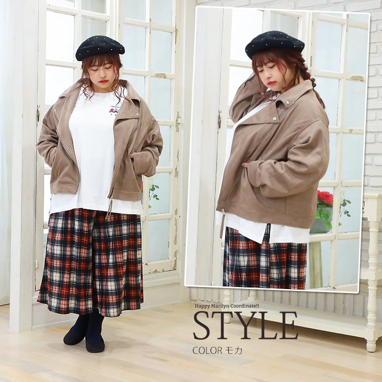 ジャケット ブルゾン LL 3L 4L 5L 秋 秋物 秋冬 ぽっちゃり ゆったり かわいい おしゃれ カジュアル ナチュラル きれいめ 上品 ガーリー スエードポンチ ライダースジャケット