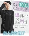 繊細メロウと洗練切替がお洒落なやわらかリブのプチハイトップス