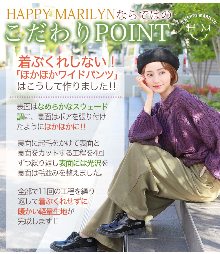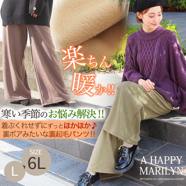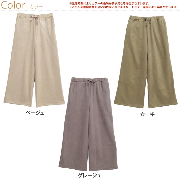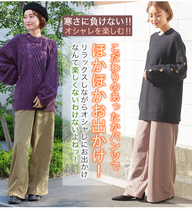 楽ちん暖か!!寒い季節にぴったりの裏生地ふわっとワイドパンツ