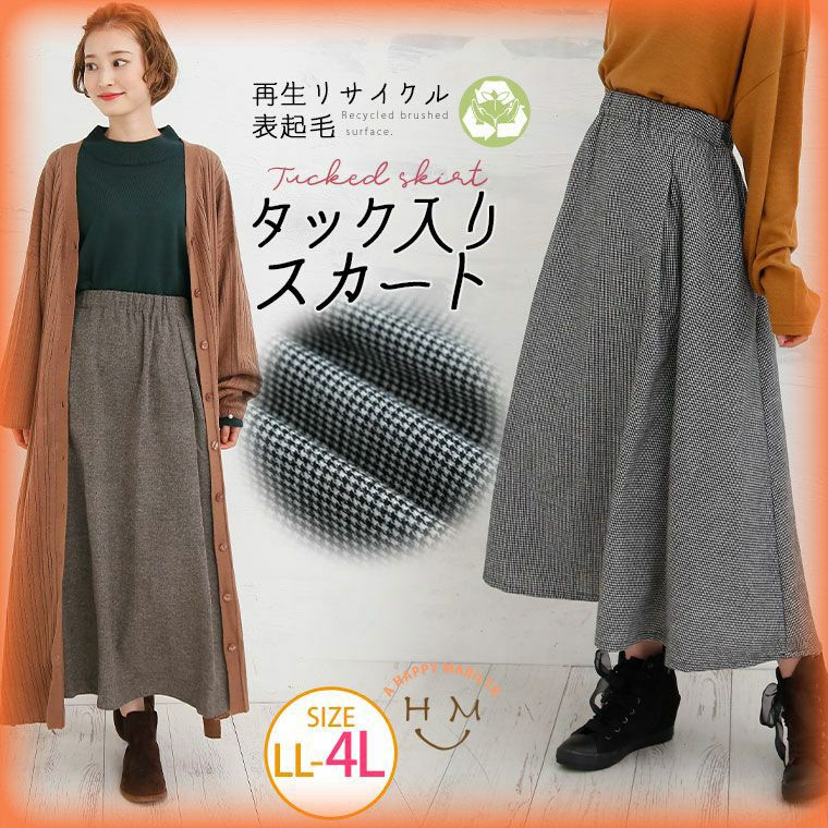 地球に優しい!再生リサイクル裏起毛のタック入りスカート