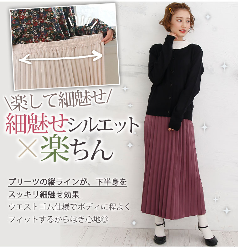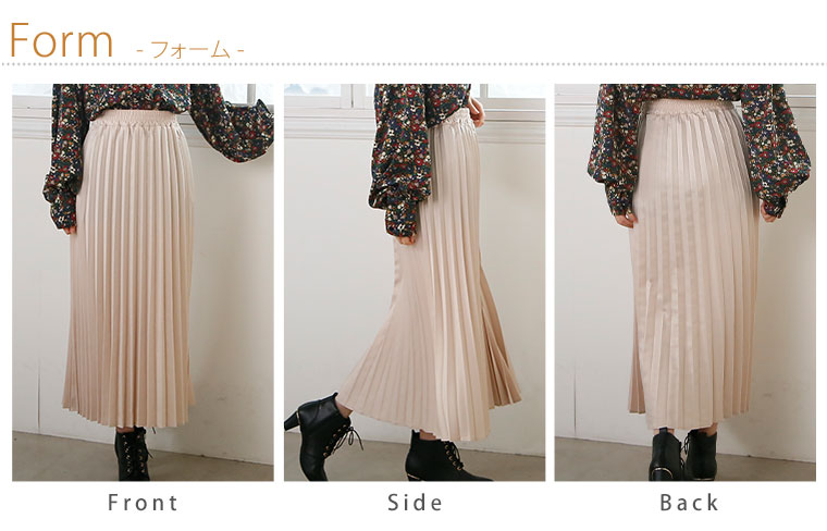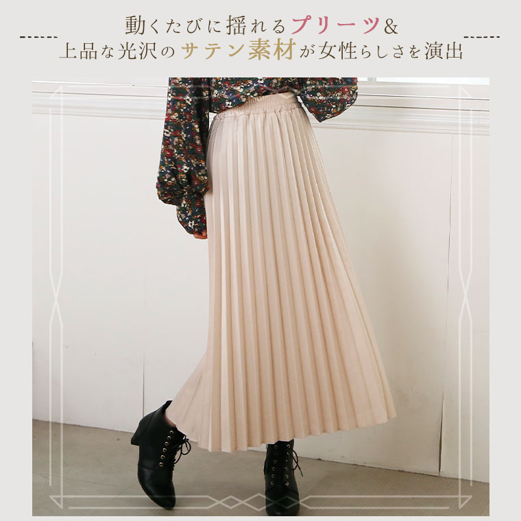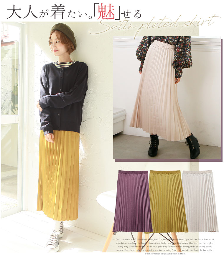 スッキリ細魅せ サテンプリーツスカート