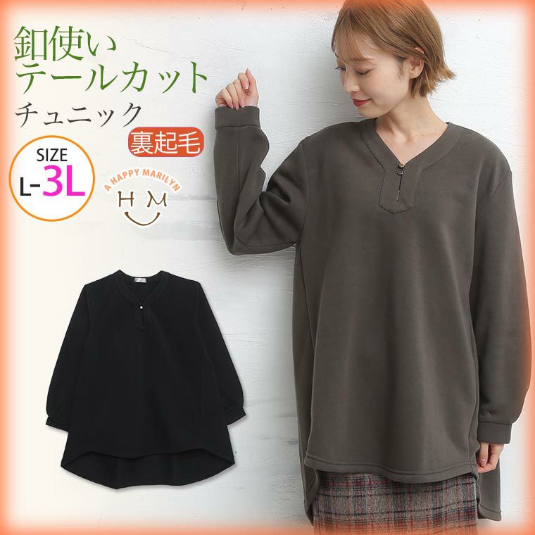 シルエットスッキリ!釦使いテールカットチュニック